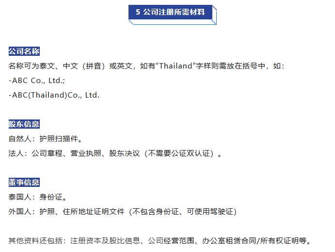 四、外资泰国公司注册所需材料